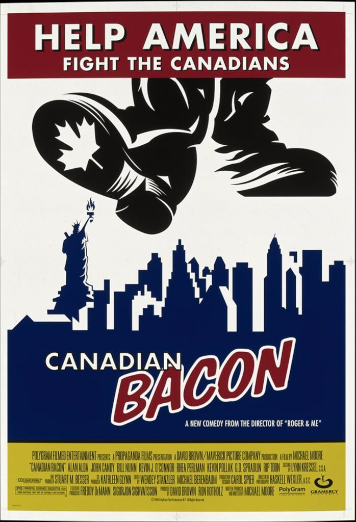 Canadian Bacon is a goofball comedy satire starring the legendary John Candy in his final on-screen role as bumbling Niagara sheriff Bud Boomer.